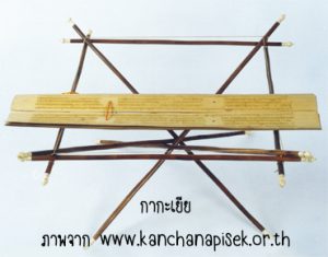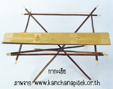 กากะเยีย เป็นชั้นวางคัมภีร์ใบลานทำเป็นชั้น ๆ คล้ายบันได ภาคเหนือเรียกว่า ชั้นแก้ว ภาคอีสาน เรียกว่า กากะเยีย/ขากะเยีย หรือขาสะเงีย สำหรับในภาคอีสานอาจมีการเรียกแตกต่างไปบ้างตามภาษาถิ่น ถือเป็นสิ่งของที่พุทธศาสนิกชนสร้างขึ้นเพื่อใช้เป็นชั้นวางสำหรับวางคัมภีร์ใบลานในระหว่างที่มีพิธีแสดงพระธรรมเทศนา ในความเชื่อทางพุทธศาสนาคัมภีร์ถือว่าเป็นของสูง อันหมายถึงคำสั่งสอนของพระพุทธเจ้า