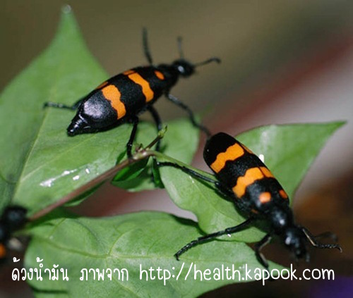 3.ด้วงน้ำมัน จะมีสารพิษอยู่ในตัว ถ้ากินเข้าไปเพียงไม่กี่ตัวก็จะได้รับสารพิษมากกว่าค่าความปลอดภัย จะทำให้ปวดท้อง อาเจียน ถ่ายอุจจาระอย่างรุนแรงและอาจถึงตายได้