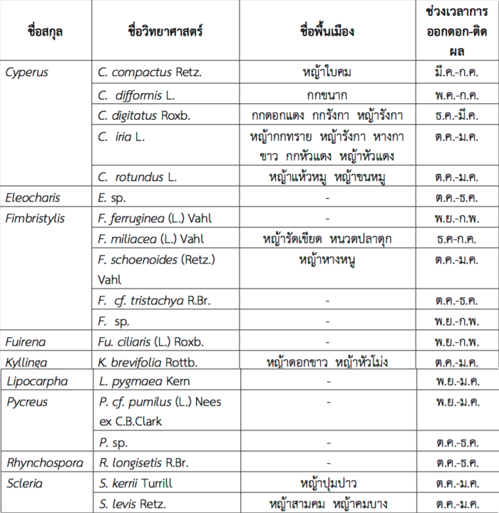 รายชื่อพืชวงศ์กกในมหาวิทยาลัยอุบลราชธานี