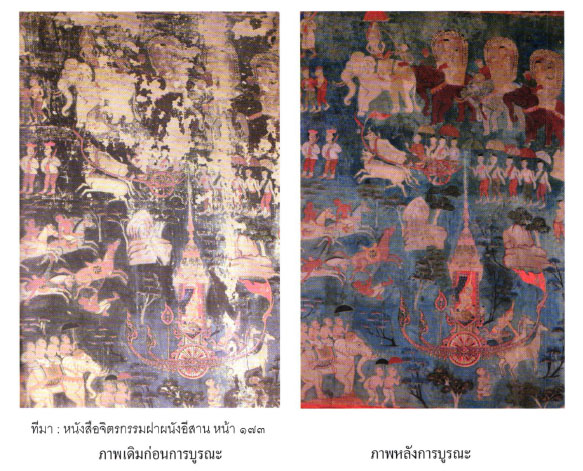 รายละเอียดเพิ่มเติม : การจัดทำหนังสือจิตรกรรมฝาผนังหอพระบาทวัดทุ่งศรีเมือง รายงานโครงการทำนุบำรุงศิลปวัฒนธรรม มหาวิทยาลัยอุบลราชธานี ปี 2555
