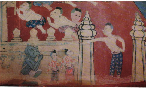 2.ขั้นรองพื้น เมื่อผนังพร้อมที่จะทำการเขียนแล้ว ก็จะเป็นขั้นตอนของการรองพื้นผนัง คนโบราณมีวัตถุดิบที่เป็นส่วนผสมในการรองพื้น ดังต่อไปนี้