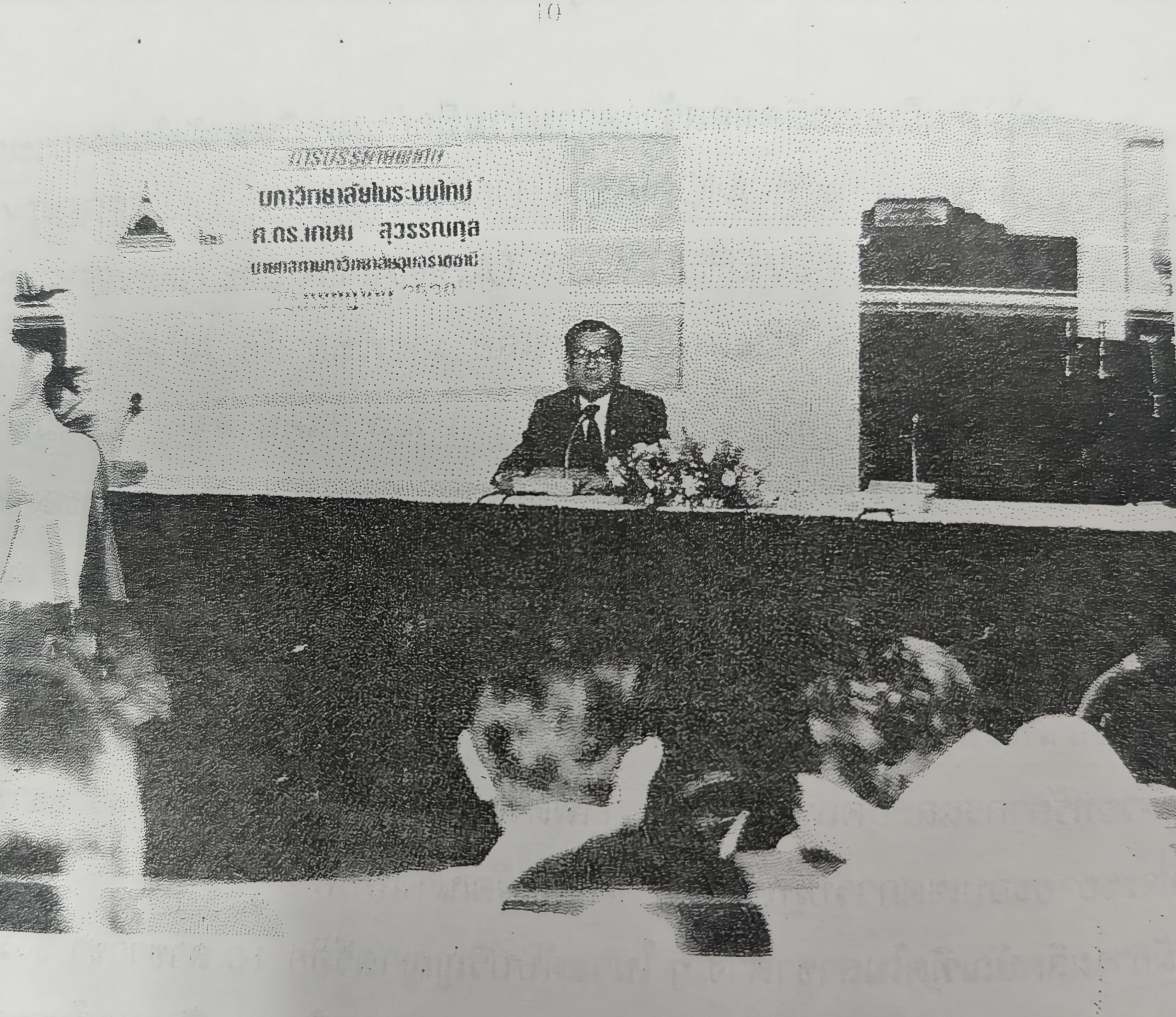 การบรรยายพิเศษ “มหาวิทยาลัยในระบบใหม่” โดย ศ.ดร.เกษม สุวรรณกุล นายกสภามหาวิทยาลัยอุบลราชธานี ในวันเสาร์ที่ 29 กรกฎาคม 2538 ณ ห้องประชุม 404 อาคารบริหาร สำนักงานอธิการบดี