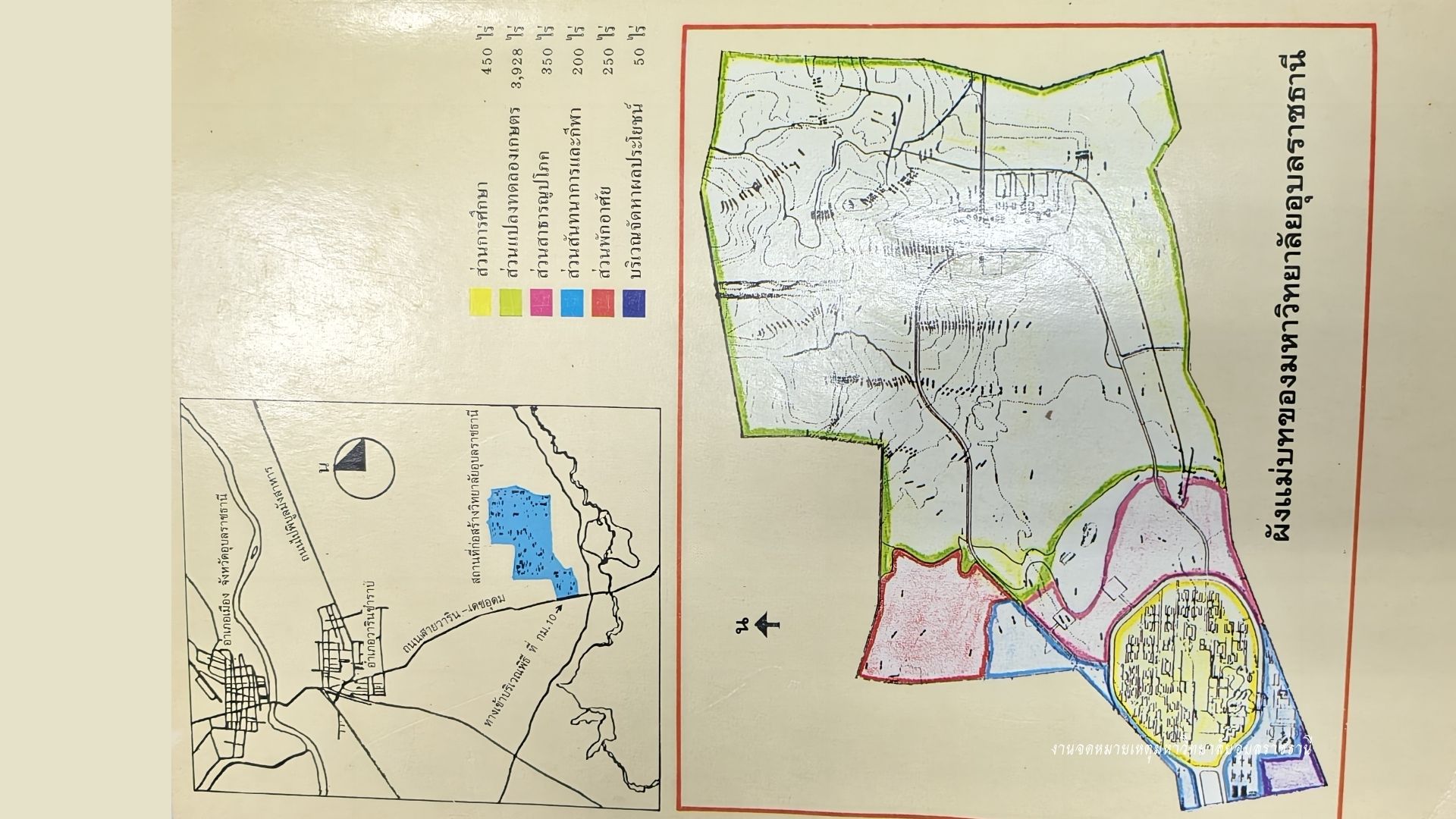 Therefore the working group adjusted the project by putting aside the establishment of the Faculty of Medicine. At the beginning there would be the Faculties of Agriculture, Engineering and Nursing. This revised project was approved by the Budget Bureau. However the Budget Bureau had requested Ubon Ratchathani province to proceed with construction at the location before the next step in the procedure could be dealt with. The Forestry Department has said that there are many types of tress which should be preserved at Dong Pha Huan. If the construction were to begin it might destroy these varieties. They thought that the site of the Laotian Refugee Camp alone would be too small if Dong Pha Huan was not to be included in the area under construction. The Province, with Ensign Danai Katesiri as governor, saw that a site at the 10th kilometer sign post on Warinchamrap-Dej-Udom Road, with an area of 5,200 rai (2 1/2 rai = 1 acre) and including four sub districts of Khu Muang, Kam Kwang, That and Po Yai might be asuitable location.